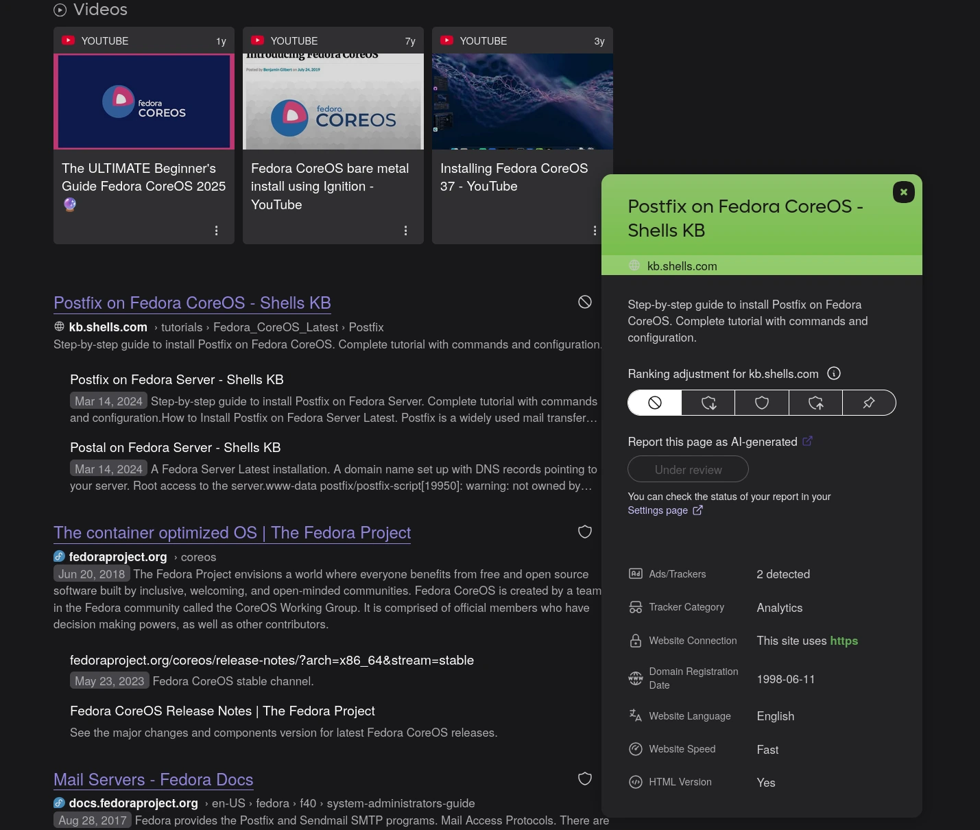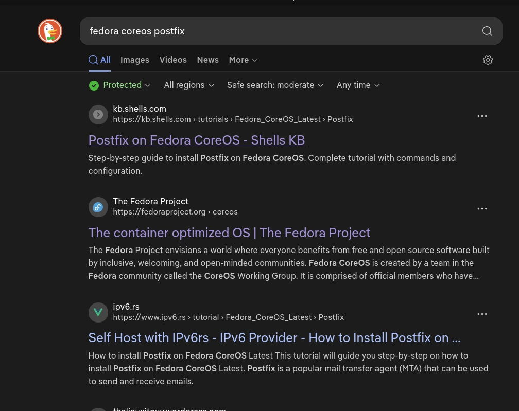 A while back, I was searching for how to configure Postfix on Fedora CoreOS. I shared an image of my DDG search results, which showed genAI slop tutorial sites among the top three results.